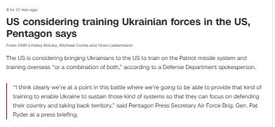 06.40 Минобороны США рассматривает возможность обучать украинских военных работе с системой "Patriot".