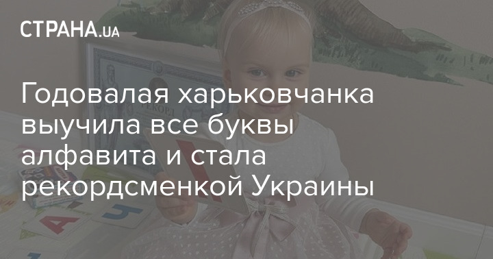 Харьковчанка Алиса Шматько в возрасте 1 год и 1 месяц получила титул рекордсменки Украины. Девочка еще не умеет говорить, однако визуально умеет определять все буквы украинского алфавита без ошибок.