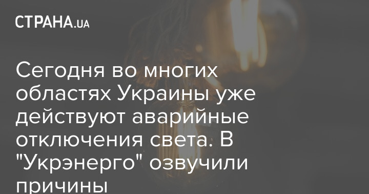 Сегодня во многих областях Украины уже действуют аварийные отключения света. В "Укрэнерго" озвучили причины