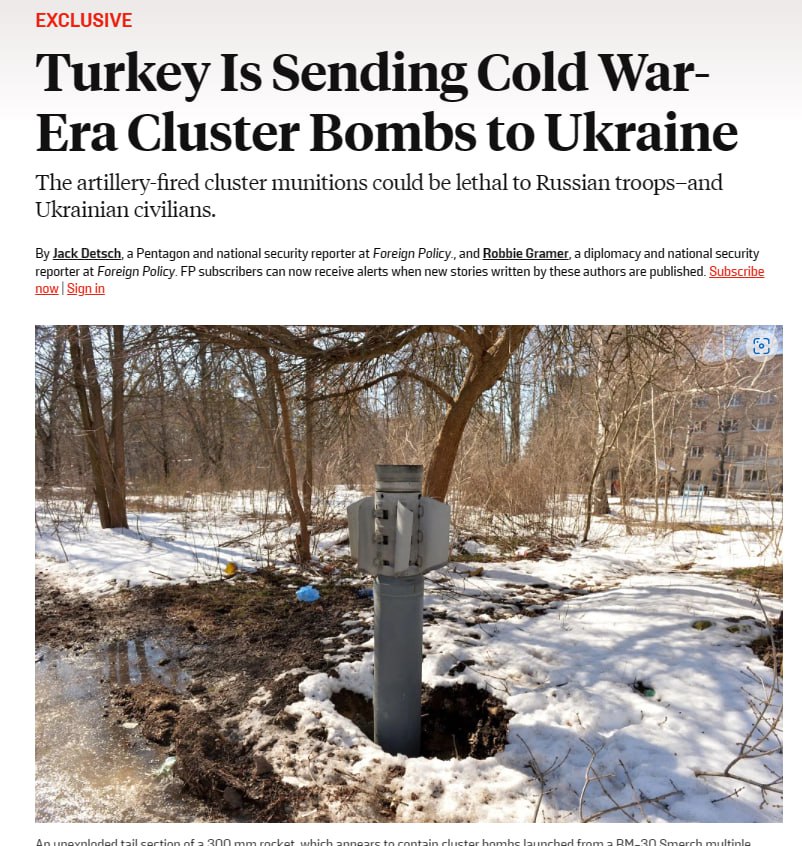 "После того, как США отказали [Украине] в доступе к кассетным боеприпасам, Турция стала единственным местом, где они смогли их получить", - сказал изданию источник.