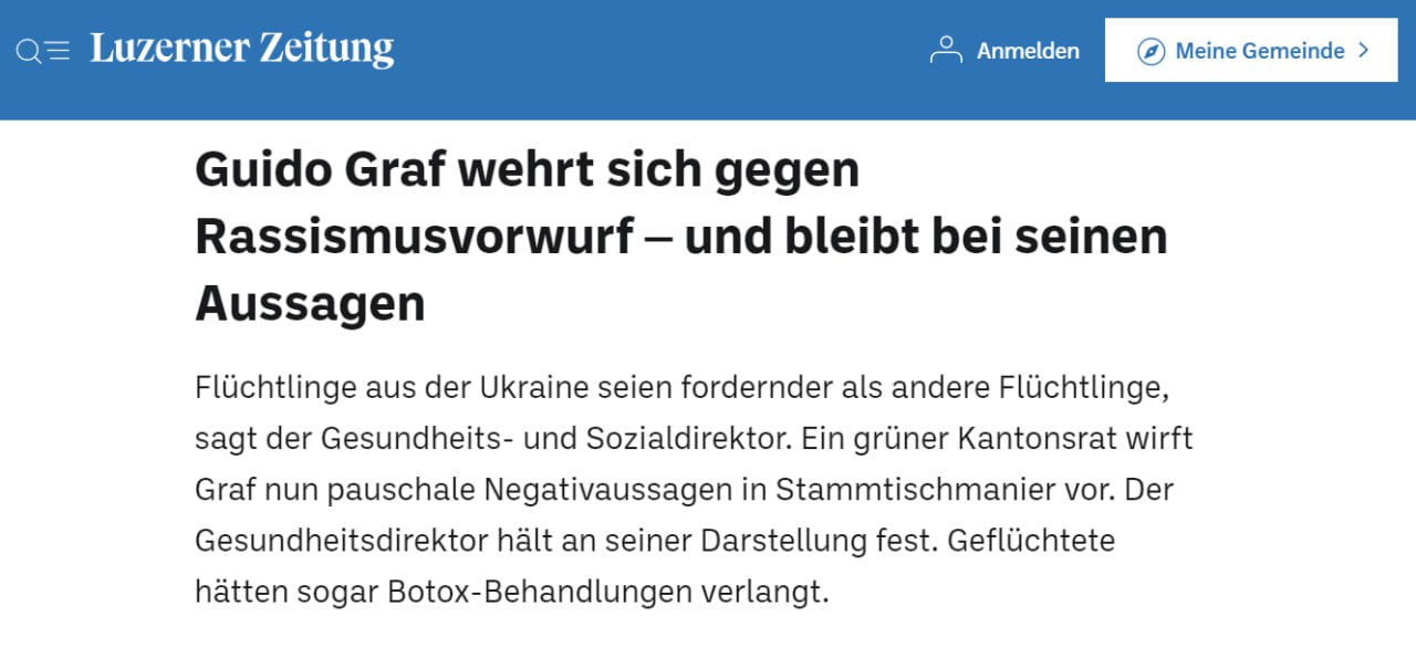 Директор по здравоохранению, тем не менее, от своих слов не отказался, как пишет Luzerner Zeitung, он заявил, что беженцы даже требовали инъекций ботоксом в рамках медицинского обеспечения.