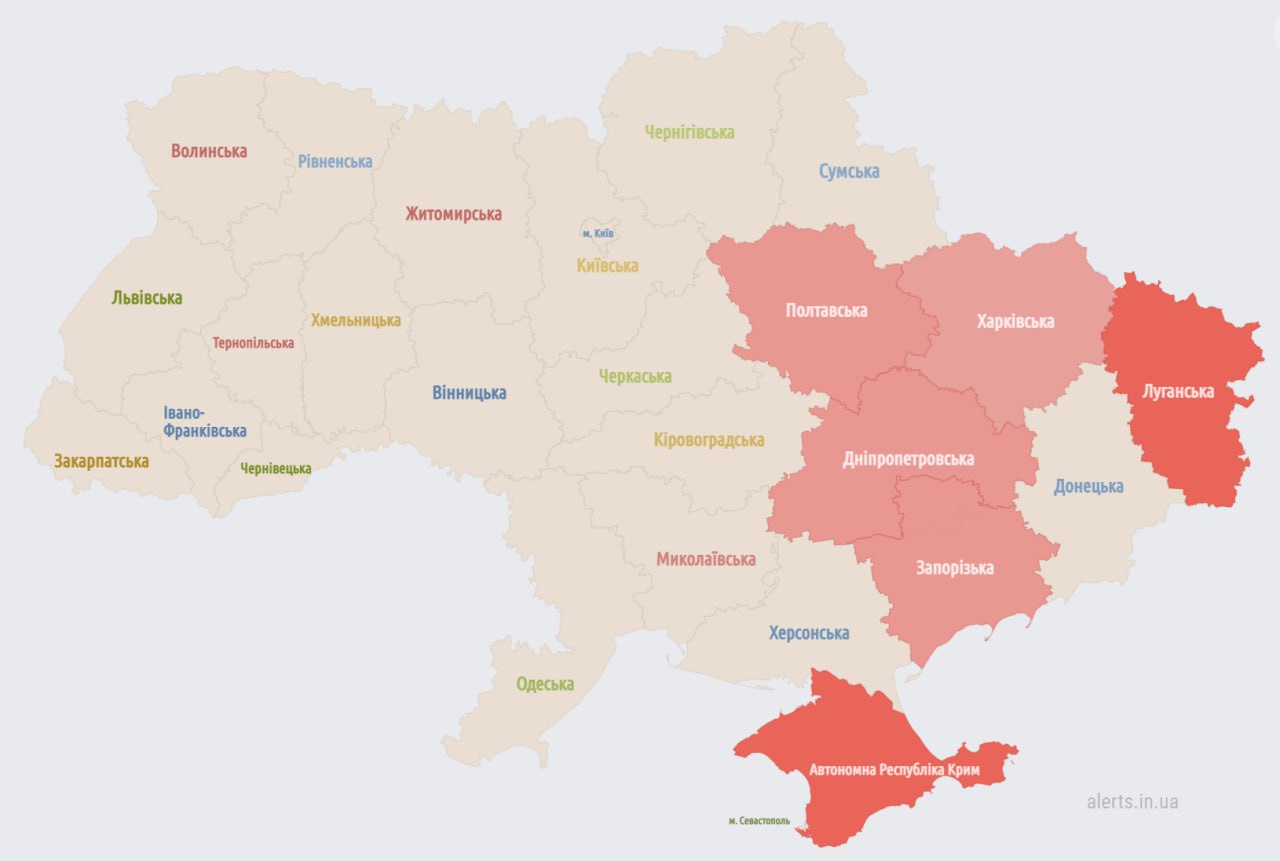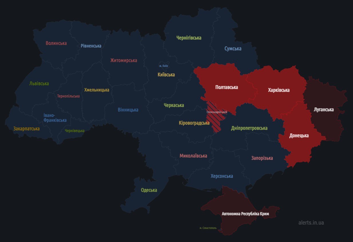 09.45 В Полтавской, Харьковской и Донецкой областях объявили воздушную тревогу. (В Луганской области и Крыму тревога действует постоянно).