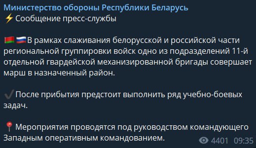 10.17 В Беларуси в рамках совместных учений с РФ намерены совершить "марш в назначенный район". Куда именно - не сообщают.