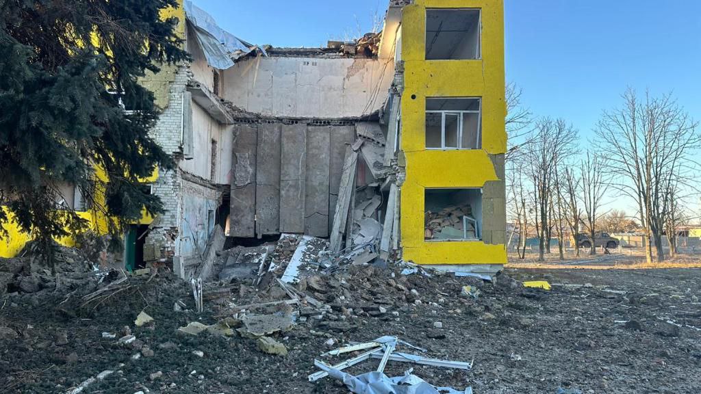 20:42 Последствия прилета по зданию школы в Лимане Донецкой области.