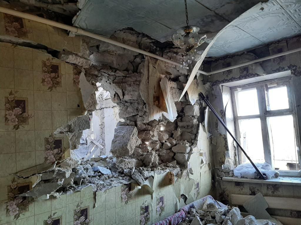 В Кураховке - прямое попадание в частный и двухэтажный дом, еще 3 дома поврежедны частично.