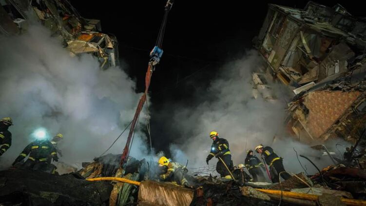 Власти Днепра планируют к ночи полностью разобрать завалы обрушенного ракетой жилого дома