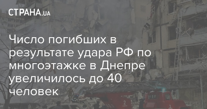 Число погибших в результате ракетного удара по Днепру возросло до 40 человек, судьба еще 30 человек - неизвестна.