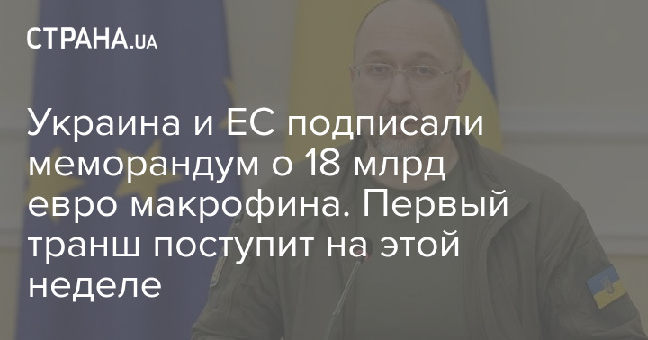 Украина и ЕС подписали меморандум о 18 млрд евро макрофина. Первый транш поступит на этой неделе