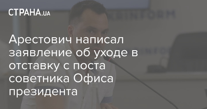 Советник Офиса президента Алексей Арестович сообщил, что написал заявление об уходе с должности.