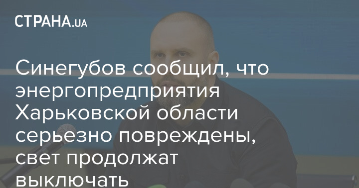 Синегубов сообщил, что энергопредприятия Харьковской области серьезно повреждены, свет продолжат выключать