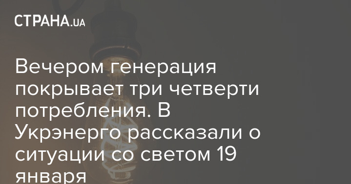 По состоянию на утро четверга, 19 января, в энергосистеме Украины сохраняется существенный дефицит мощностей, особенно в вечернее время, когда генерация может покрыть лишь 3/4 потребления электричества. Тем не менее, потребление сегодня ожидается в меньшем объеме из-за потепления.