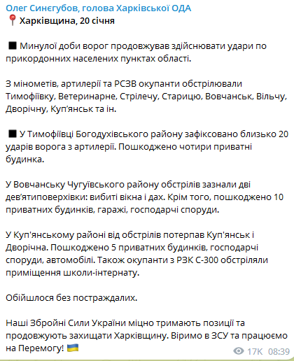 Обстреляли Тимофеевку, Ветеринарное, Стрелечью, Старицу, Волчанск, Вильчу, Двуречную, Купянск и другие