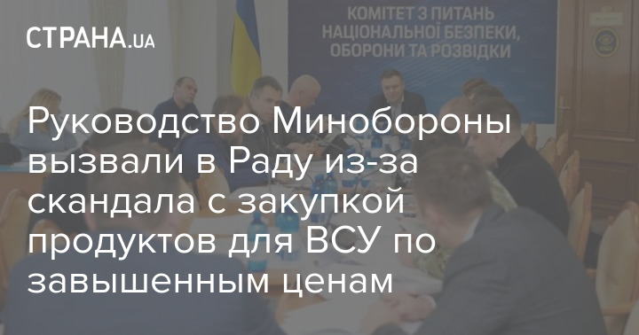 В связи со скандалом по закупке продуктов для ВСУ по завышенным ценам руководство Минобороны вызвано на заседание Комитета Верховной Рады по вопросам нацбезопасности, обороны и разведки.