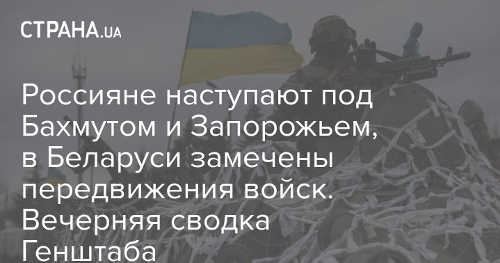 В Генеральном штабе Вооруженных сил Украины опубликовали оперативную сводку с фронта по состоянию на 18:00 21 января. Сообщается, что российские войска наступают под Бахмутом и Запорожьем, а в Беларуси перемещаются подразделения территориальных войск.