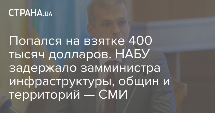 Национальное антикоррупционное бюро (НАБУ) задержало заместителя министра инфраструктуры, общин и территорий Василия Лозинского.