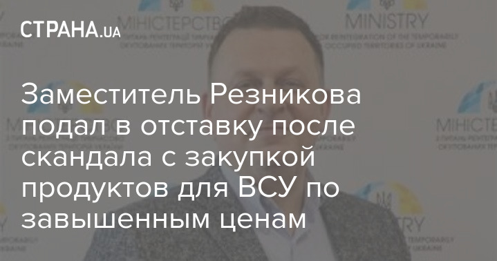 Заместитель Резникова подал в отставку после скандала с закупкой продуктов для ВСУ по завышенным ценам