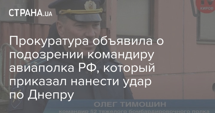 Прокуратура объявила о подозрении командиру авиаполка РФ, который приказал нанести удар по Днепру
