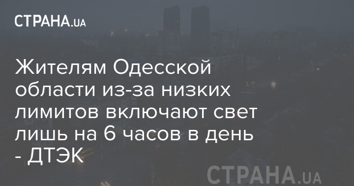 Жителям Одесской области из-за низких лимитов включают свет лишь на 6 часов в день - ДТЭК