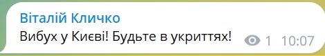 Вместе с тем, после сообщений КГВА в столице прогремел взрыв. О нем сообщил мэр Киева Виталий Кличко. Он также призвал оставаться в укрытиях.