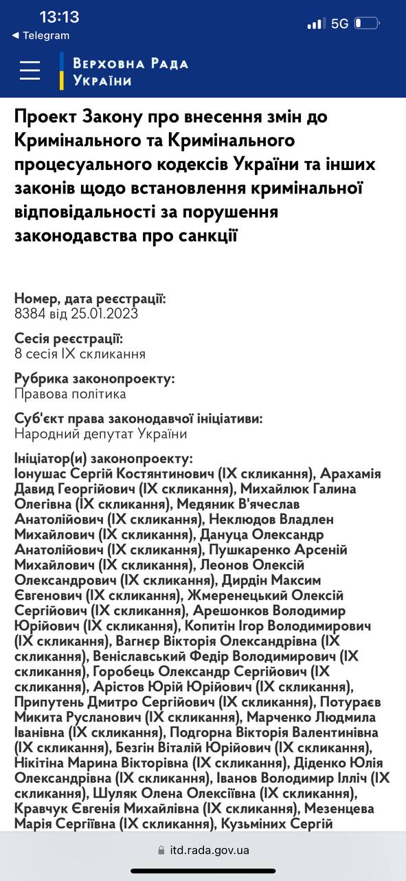 Группа депутатов от "Слуги народа" написала законопроект, которым предлагается дополнить Уголовный кодекс новой статьей - об ответственности за нарушение требования законодательства о санкциях.
