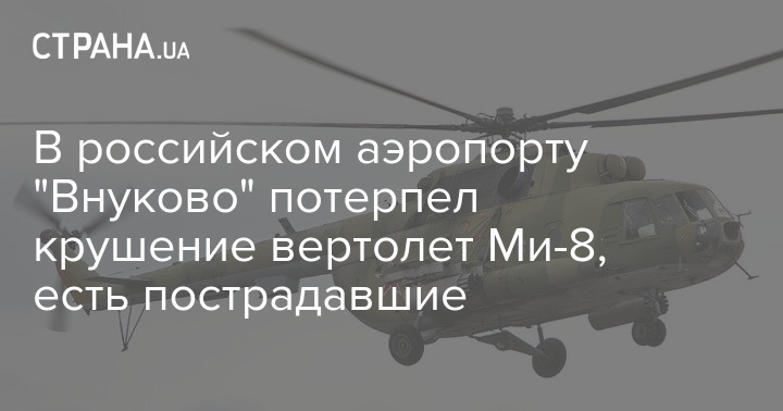 "Вертолет Ми-8 при посадке во "Внуково" зацепил лопастями землю и получил повреждения. По предварительным данным, есть пострадавшие", - пишет "Интерфакс" со ссылкой на российские экстренные службы.