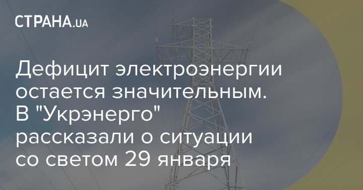 Дефицит электроэнергии остается значительным. В "Укрэнерго" рассказали о ситуации со светом 29 января