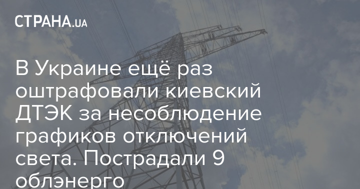 Национальная комиссия, осуществляющая государственное регулирование в сфере энергетики и коммунальных услуг (НКРЭКУ) повторно оштрафовала ДТЭК "Киевские региональные электросети" за несоблюдение графиков отключений электроэнергии.