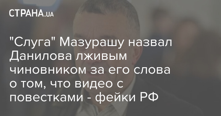 "Слуга" Мазурашу назвал Данилова лживым чиновником за его слова о том, что видео с повестками - фейки РФ
