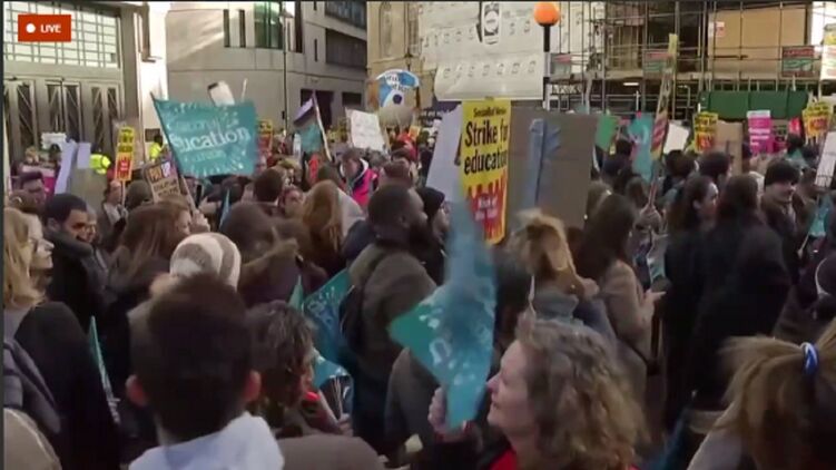В центре Лондона более полумиллиона человек собрались на забастовку с требованием повысить зарплаты на фоне резкого роста стоимости жизни.