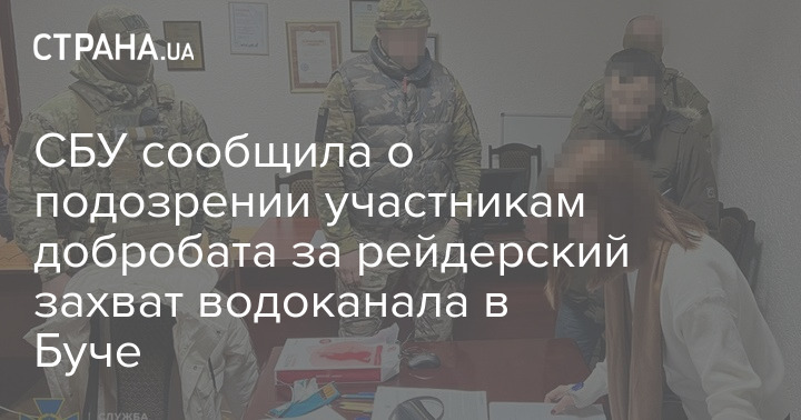 Служба безопасности Украины объявила о подозрении пятерым участникам добровольческого батальона за попытку рейдерского захвата коммунального предприятия "Бучаводоканал" в августе прошлого года.