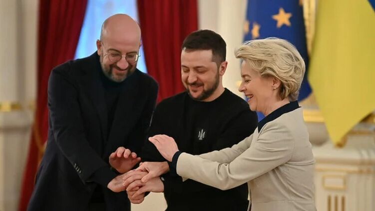 Шарль Мишель, Владимир Зеленский и Урсула фон дер Ляйен в Киеве
