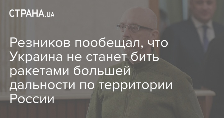 Министр обороны Резников пообещал, что Украина не будет бить ракетами большей дальности по территории России.