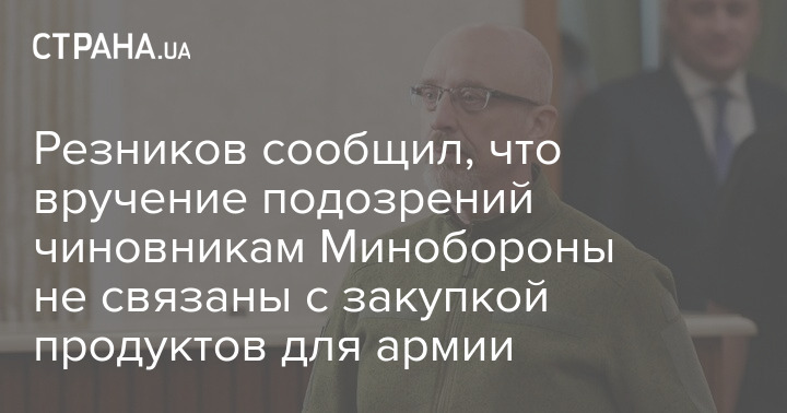 Подозрения, которые вручили чиновникам Минобороны украинские силовики, не связаны с закупкой питания, заявил министр обороны Алексей Резников на сегодняшней пресс-конференции.