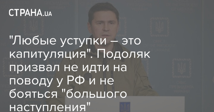 Советник главы Офиса президента Михаил Подоляк призвал не идти на уступки России, которых она добивается разговорами о "большом наступлении".