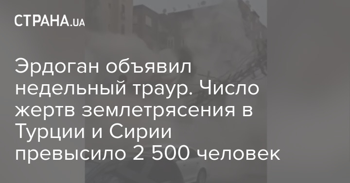 Эрдоган объявил недельный траур. Число жертв землетрясения в Турции и Сирии превысило 2 500 человек
