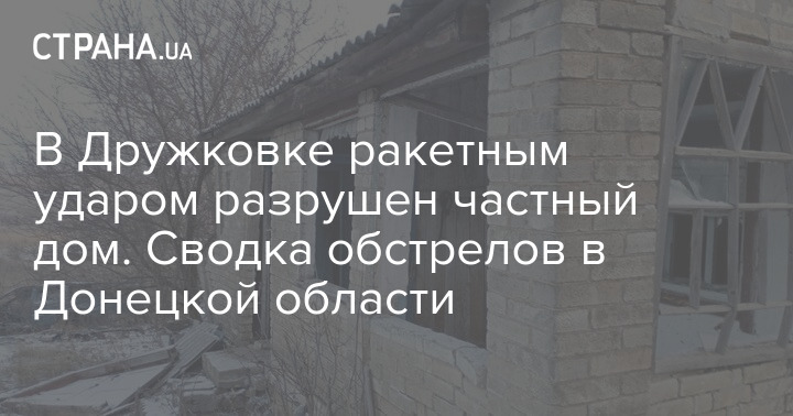 В Дружковке ракетным ударом разрушен частный дом. Сводка обстрелов в Донецкой области