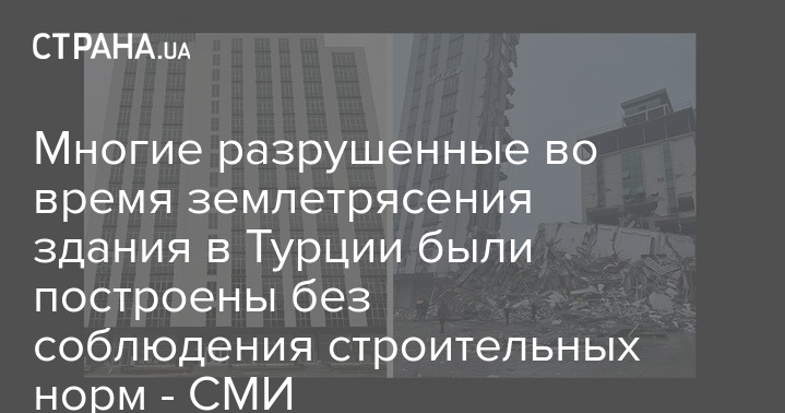 Многие разрушенные во время землетрясения здания в Турции были построены без соблюдения строительных норм - СМИ