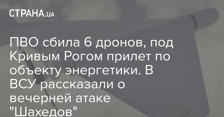 В пятницу вечером, 10 февраля, российские войска атаковали иранскими дронами "Шахед" южные регионы Украины. Зафиксировано попадание в энергетический объект на Криворожском направлении, шесть беспилотников удалось сбить.