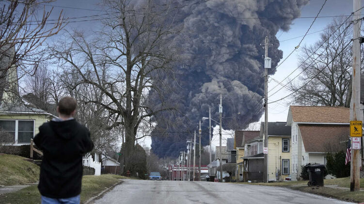 В Огайо продолжается техногенная катастрофа после аварии поезда, перевозившего опасные химикаты. Видео