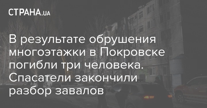 В Покровске из-за разрушения многоэтажки при обстреле погибли три человека, 11 раненых.