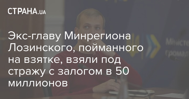Бывшего замглавы Минрегиона Василия Лозинского, которого обвиняют в получении взятки в $400 000, взяли под стражу с альтернативой внесения залога в 50 миллионов гривен.