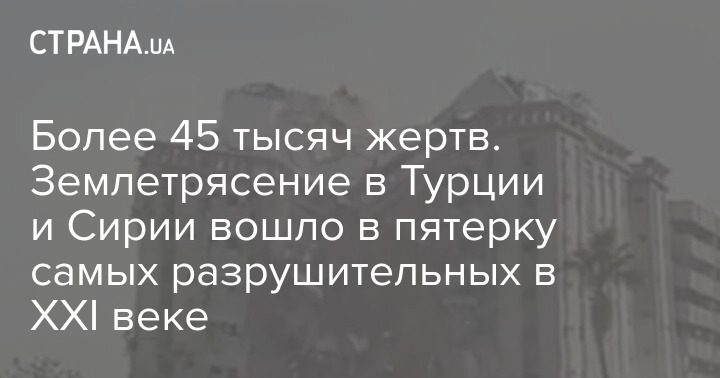 Недавно случившееся землетрясение в Турции и Сирии уже вошло в топ-5 самых разрушительных в XXI веке.