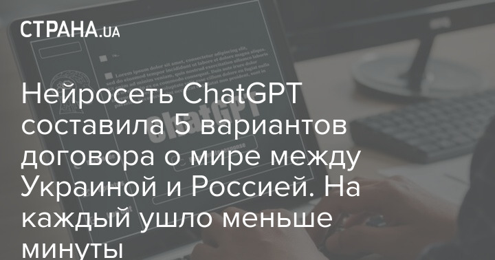Доступная теперь в Украине нейросеть ChatGPT менее чем за минуту составила договор о мире между Украиной и Россией.