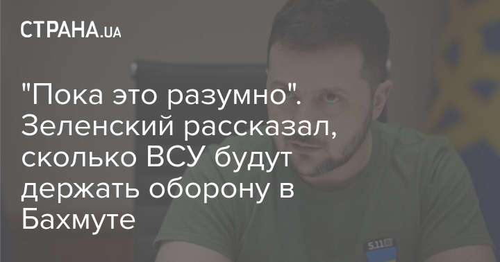 Президент Украины Владимир Зеленский заявил, что украинские войска не намерены удерживать Бахмут Донецкой области любой ценой. Город будут удерживать до тех пор, "пока это будет разумно".