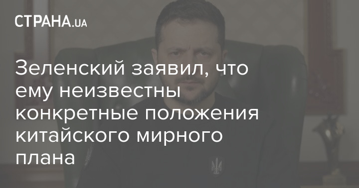 Владимир Зеленский заявил, что ему неизвестны конкретные положения мирного плана для российско-украинской войны, который планирует представить Китай, и он рассчитывает на поддержку украинской "формулы мира".