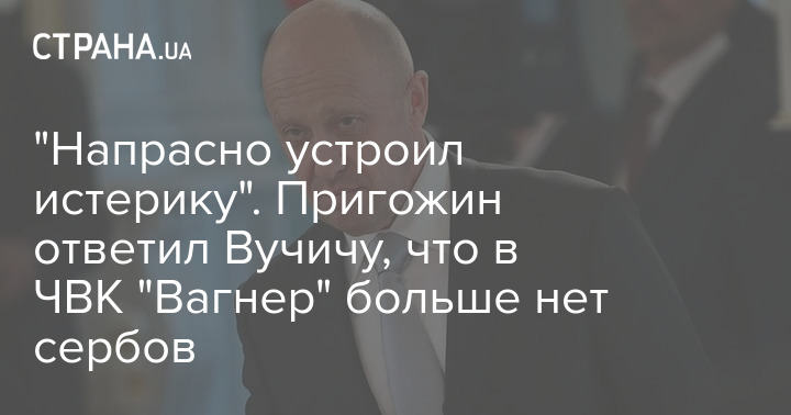 "Вучич напрасно истерику устроил. В ЧВК "Вагнер" на сегодняшний день (1 марта 2023 года) нет ни одного серба. Последний, кто воевал в ЧВК "Вагнер", убыл с направления два месяца назад. Если кто-нибудь из сербов заявит, что он воевал в ЧВК "Вагнер" в 2023 году – это обман. Не верьте ему", – ответил Пригожин в своем телеграм-канале.