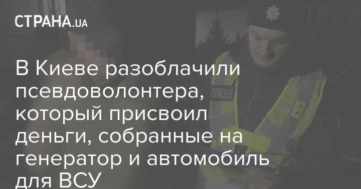 В Киеве следователи сообщили о подозрении 26-летнему мужчине, который под видом волонтера обещал передать бойцам автомобиль и купить генератор по цене ниже рыночной, но обязательства не выполнил и присвоил себе донаты.