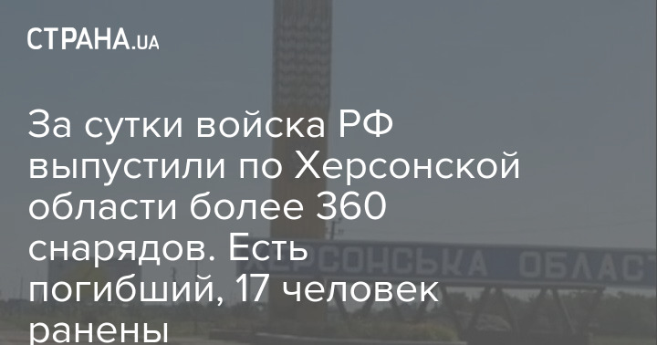 За сутки войска РФ выпустили по Херсонской области более 360 снарядов. Есть погибший, 17 человек ранены
