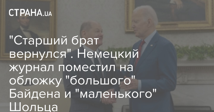 Немецкий журнал "Штерн" выпустил обложку, на которой "большой" президент США Джо Байден ведет за руку "маленького" канцлера ФРГ Олафа Шольца. Заголовок на ней гласит: "Старший брат вернулся".