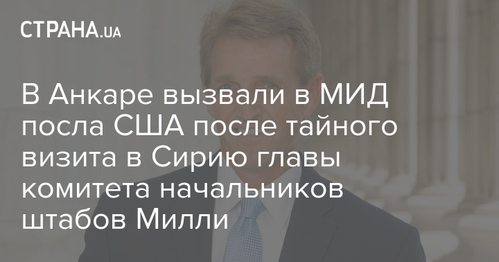 Посла США в Анкаре Джеффа Флейка вызвали в МИД Турции для объяснений. Это связано с тайным недавним визитом главы Объединённого комитета начальников штабов США Марка Милли в Сирию.